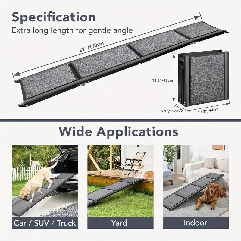 Extra-Long Dog Ramp for Cars - Non-Slip Surface, Foldable Pet Ladder with Metal Frame